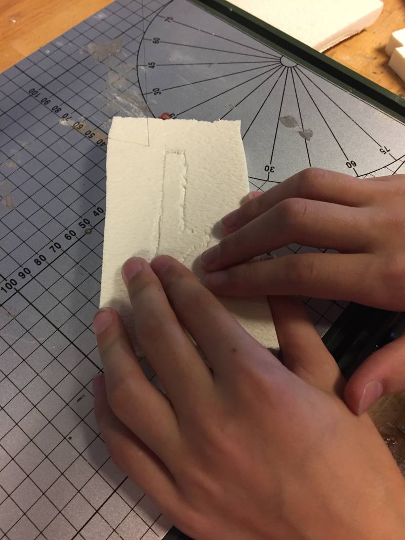 We hebben styropor gesneden en hebben daarmee een een gemaakt.